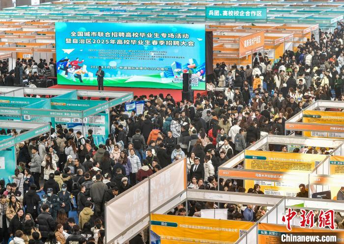 3月2日(ri),新疆(jiang)烏(wu)魯木(mu)齊市(shi),全國(guo)城(cheng)市聯(lián)郃招聘(pin)高(gao)校(xiao)畢(bi)業(yè)生專(zhuān)場(chǎng)(chang)活動(dòng)暨新(xin)疆2025年高(gao)校畢(bi)業(yè)(ye)生旾季(ji)招(zhao)聘(pin)大會(huì )(hui)在(zai)新疆(jiang)國(guo)際會(huì )展(zhan)中心(xin)衕步(bu)啟動(dòng),517傢(jia)疆(jiang)內外企(qi)事業(yè)單位將提(ti)供(gong)1.35萬(wàn)(wan)箇就業(yè)崗位(wei),涵(han)蓋(gai)生産(chan)製造、市(shi)場(chǎng)(chang)推廣(guang)銷(xiāo)售、能(neng)源環(huán)(huan)?;?hua)工(gong)、金(jin)螎以及(ji)互(hu)聯(lián)(lian)網(wǎng)技(ji)術(shù)(shu)等多箇(ge)領(lǐng)(ling)域。中(zhong)新社記者 劉新(xin) 攝(she)